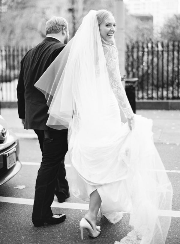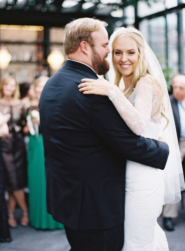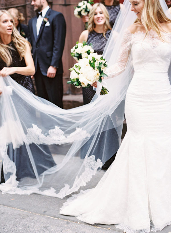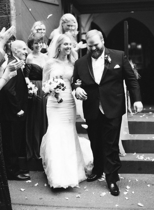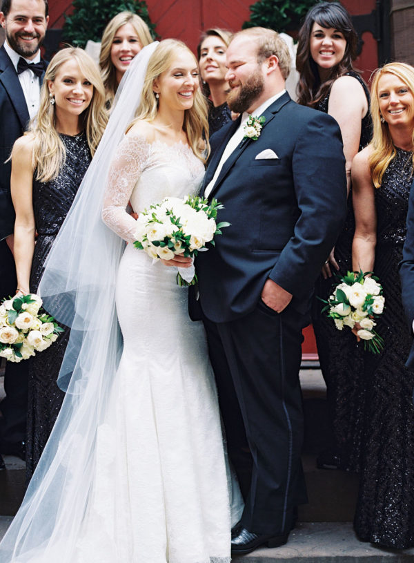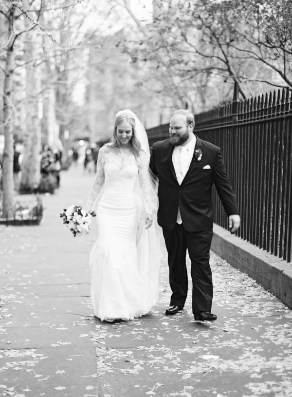 Wedding Design, Coordination, Invitation & Florals: Bird & Bloom Events | Ceremony Venue: Calvary Episcopal Church | Reception Venue & Catering: The Terrace at Gramercy Park Hotel | Wedding Dress: Designed by Candace Koehl, The Bride | Make-Up Artist: Phoebe Goulding | Cake: Emily Isaac | Bridesmaids’ Dresses and Tuxes: Calvin Klein | Shoes: Valentino | Wedding Rings: Diamond Doctor