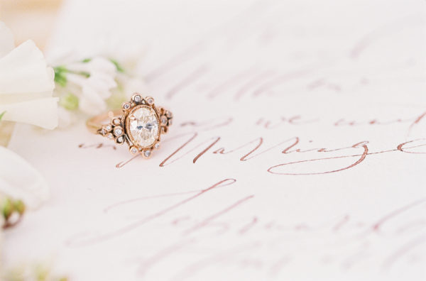 Floral Design: Bows & Arrows | Videography: Imageclairity | Tabletop: Casa de Perrin | Dresses: Tatyana Merenyuk | Veils: Girl and a Serious Dream | Rings: Trumpet & Horn | Rentals: Found Rentals | Paper Goods: Script Merchant Calligraphy | Make-Up & Hair Artist: Amy Clarke for The Halcyon Agency | Ribbons: Frou Frou Chic | Engraving: Paper Birch Designs